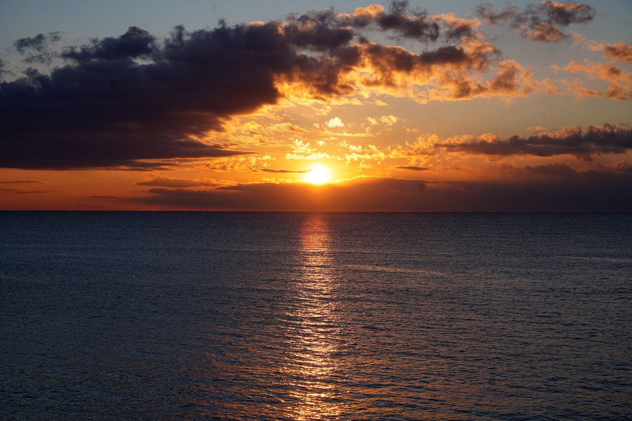 残念ながら水平線には雲がかかっていましたが、少しして雲間から力強い初日の出が見られました