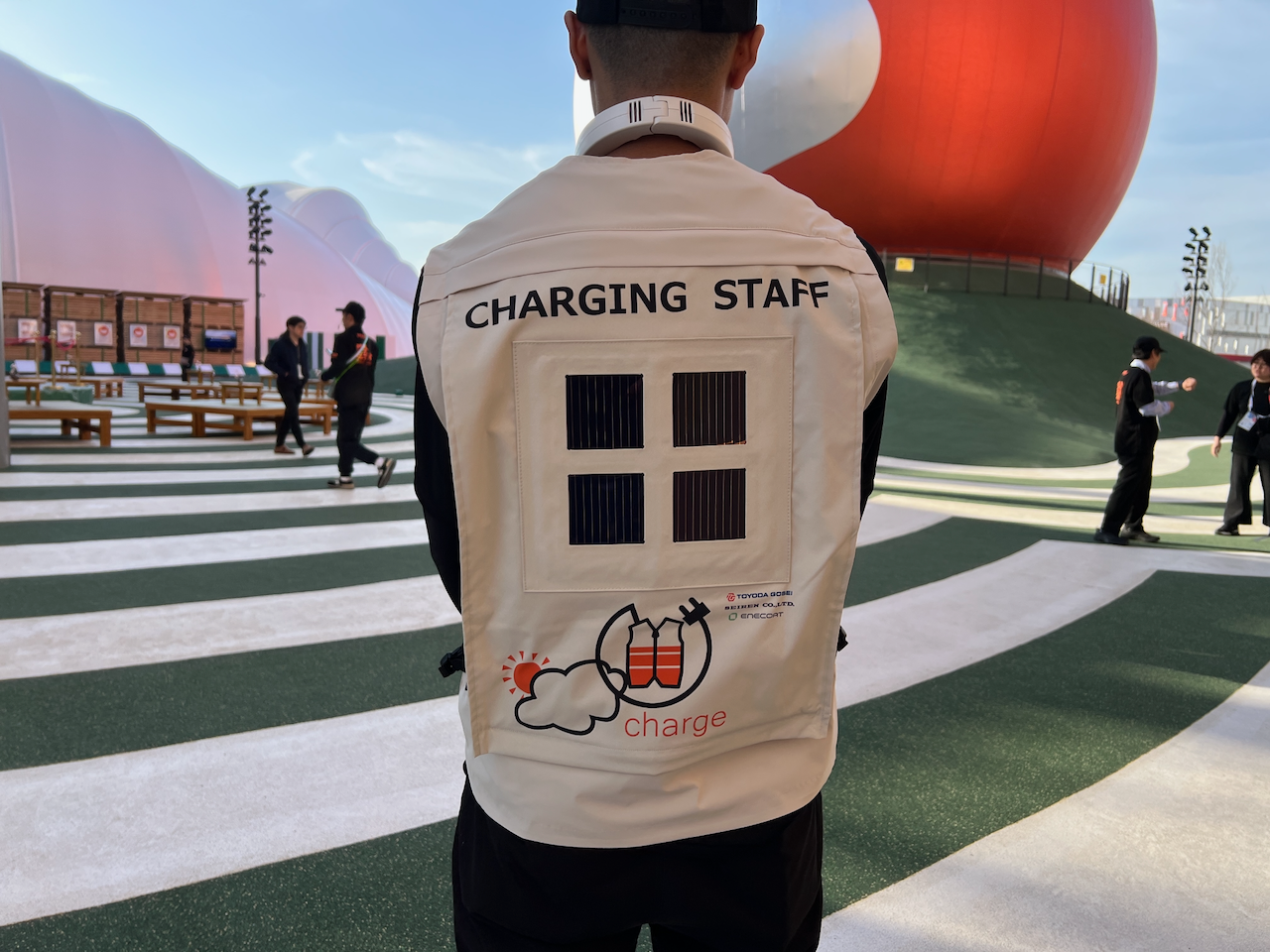 ユニークな使い方としては、ペロブスカイト太陽電池が搭載された空調ファン付きのスマートウェアがあり、一部のスタッフに提供されました。充電の手間がいらず、スマートフォンやパソコンも充電できるとのことで、夏のマストウェアとして販売されるのを期待したいところです。
