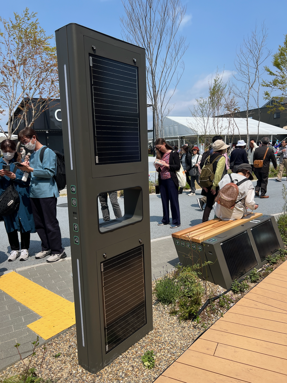 ポーランドパビリオンの前には、太陽光発電を利用したスマートスタンドや、置くだけで充電できるスマートベンチが設置され、屋外での実用性が検証されていたようです。