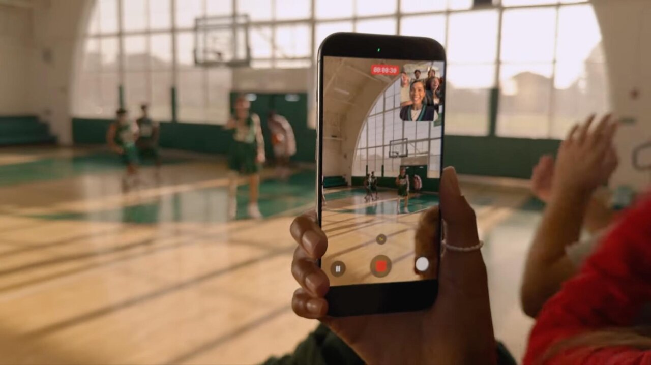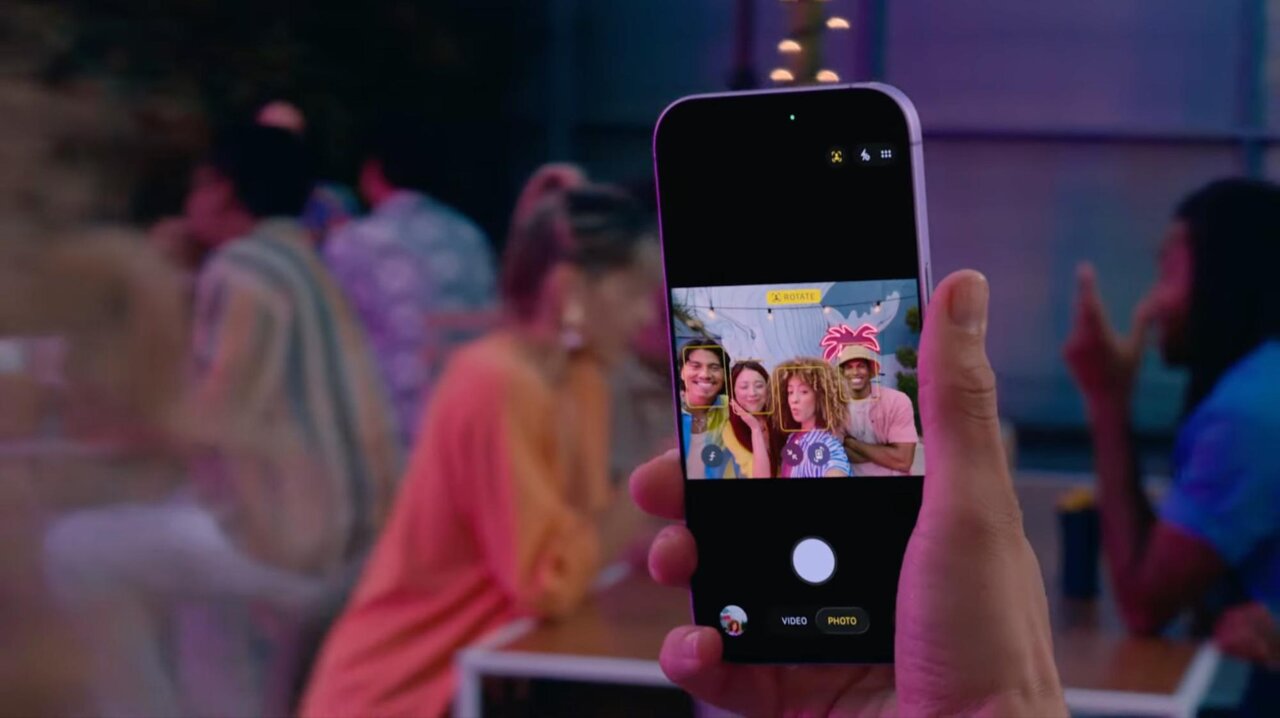 イメージセンサーは一般的な横長ではなく、正方形のセンサーを採用したことで、iPhoneを縦持ちでしっかり固定しながら横長のセルフィが可能に。縦横の切り替えは手動に加え、被写体が見切れているとAIが自動で横長に切り替えます。