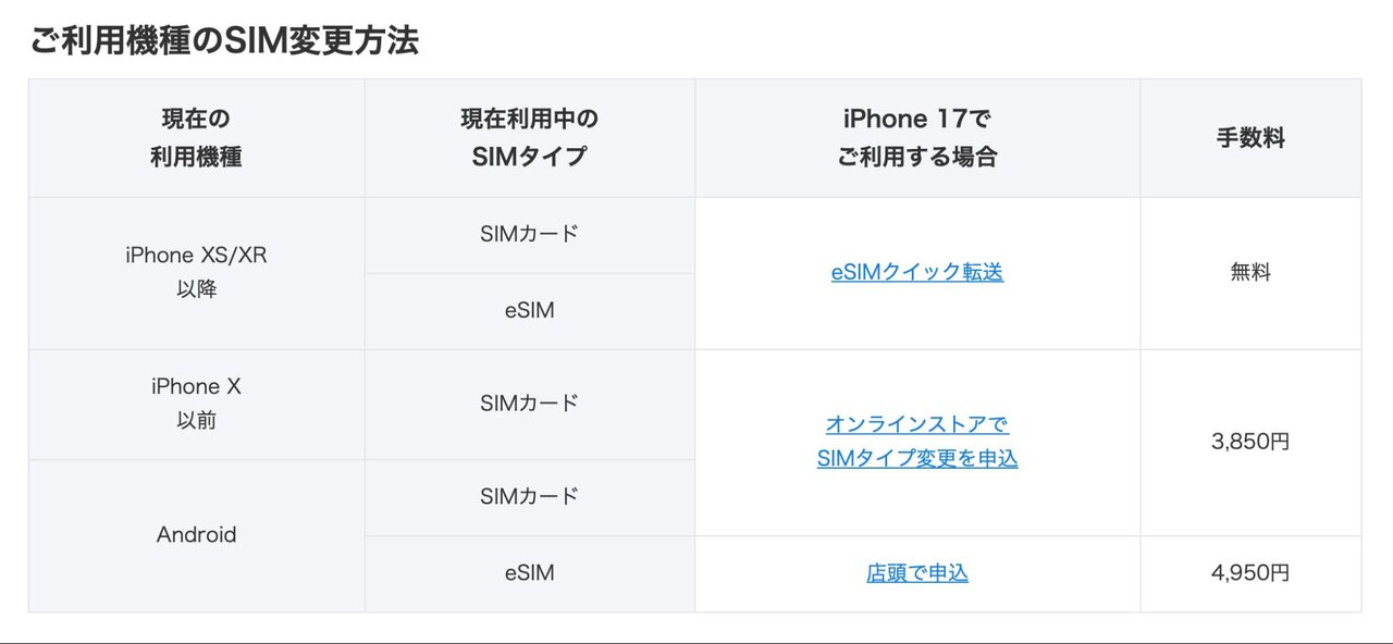 ワイモバイルのSIM変更。AndroidとeSIMの組み合わせから新しいiPhone 17に買い替えるには店頭申込と4950円が必要