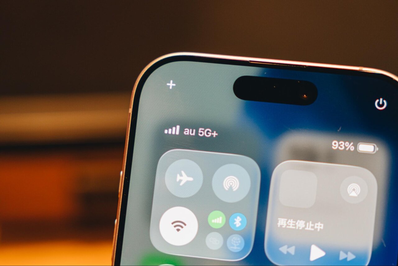 auは通信機能もアピール。iPhone 17 シリーズ / Airから対応が始まった高速な5G専用ネットワーク(5G Sub6)通信時には、アンテナ表示(ピクト表示)が「5G+」に切り替わり、高速通信をひと目で確認できるようになりました。なお、この表示は他キャリアでも確認されています。