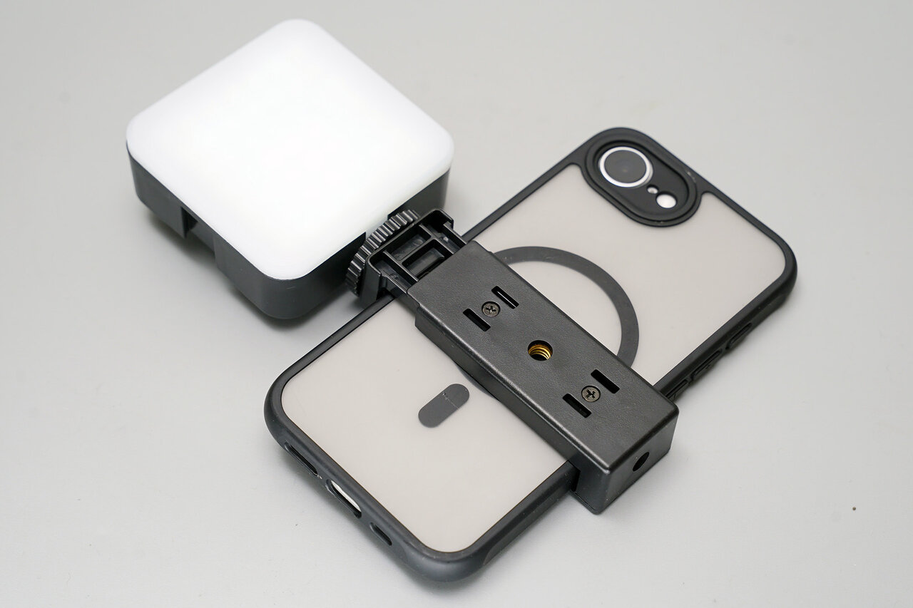 さらにLEDライトはフラッシュのように一瞬明るくなるのではなく、ついたままの定常光なので、スマートフォンホルダーでスマートフォンに装着しても、カメラのマニュアルモード以外では、そのまま撮影するだけで明るさなどを自動で調整してくれます。