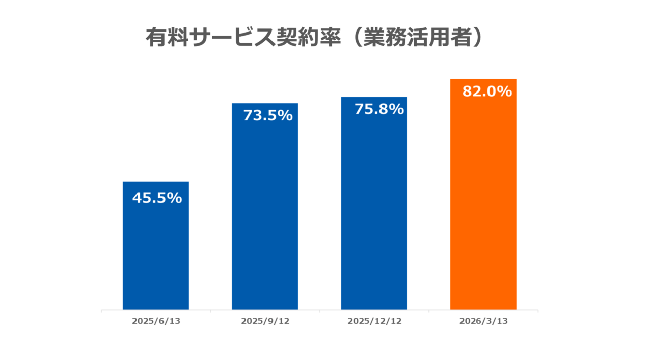 GMOインターネットグループ「AI活用実態調査、有料サービス契約率(業務活用者)の推移」2026年4月発表