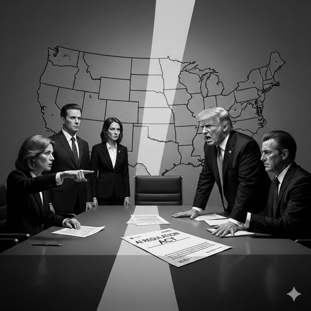 AI規制を巡るトランプ大統領と州政府の対立の行方は?(筆者がGeminiで生成)