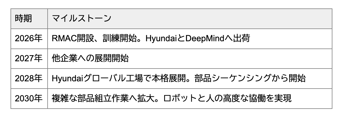 2026年に生産するAtlasはすべて、すでにHyundai Motor GroupおよびGoogle DeepMind向けに割り当てられており、2027年以降、新しい顧客への展開が始まる予定です。