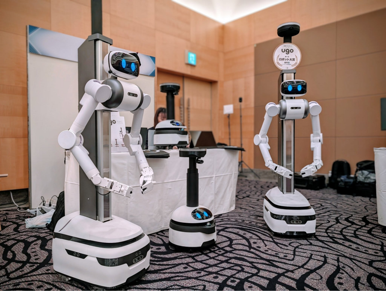 GMO AI・ロボティクス大会議&表彰式 2025の会場内では各種ロボットも展示されていた。写真はugo製の「ugo pro」と「ugo mini」