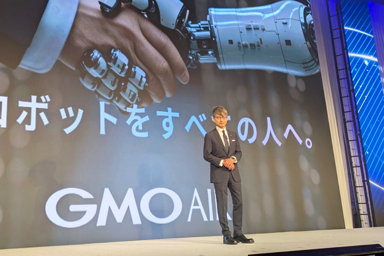 冒頭のスピーチで、GMOインターネットグループの熊谷正寿グループ代表は、AIとロボティクスを「人類史上最大の技術革命」と位置づけました。