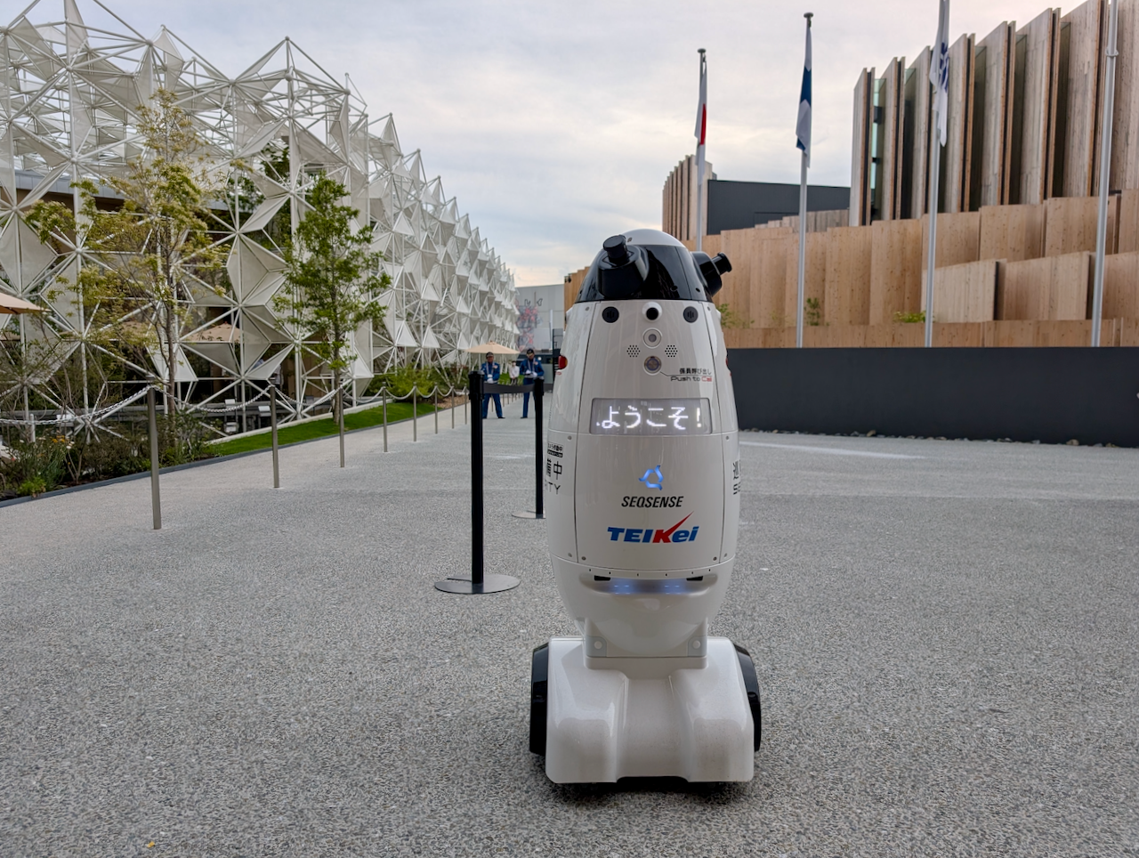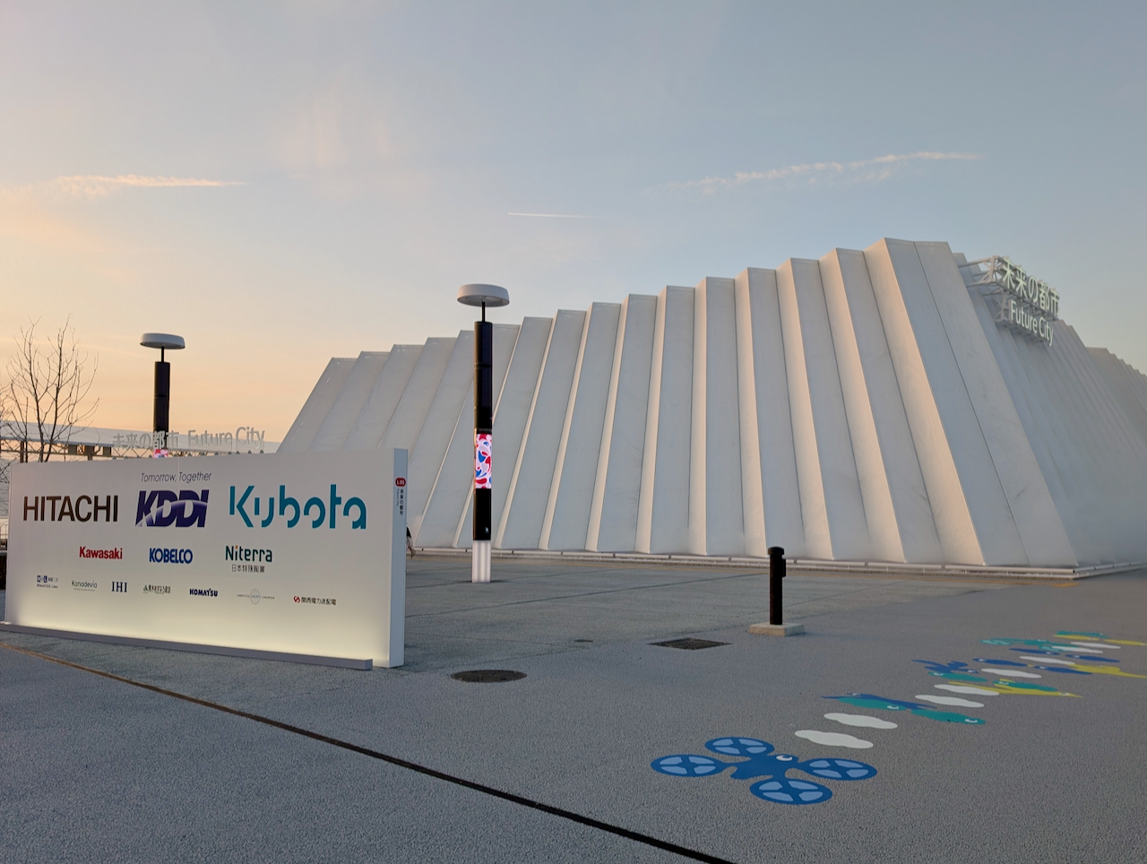 また、防犯カメラや通信基地局、蓄電池などを一体化した未来の街路灯「スマートポール」が「未来の都市パビリオン」の前などに設置されていました。風力や太陽光で発弾するため電線も電源工事も不要で、どこでも設置しやすい点が特長です。会期中はスマホの充電や湾曲型ディスプレイを使ったサイネージとしても使われていました。将来的には自動運転のインフラや見守りドローンの拠点などへの活用も期待され、街の設備にも、安全・安心を支える機能が広がりつつあります。