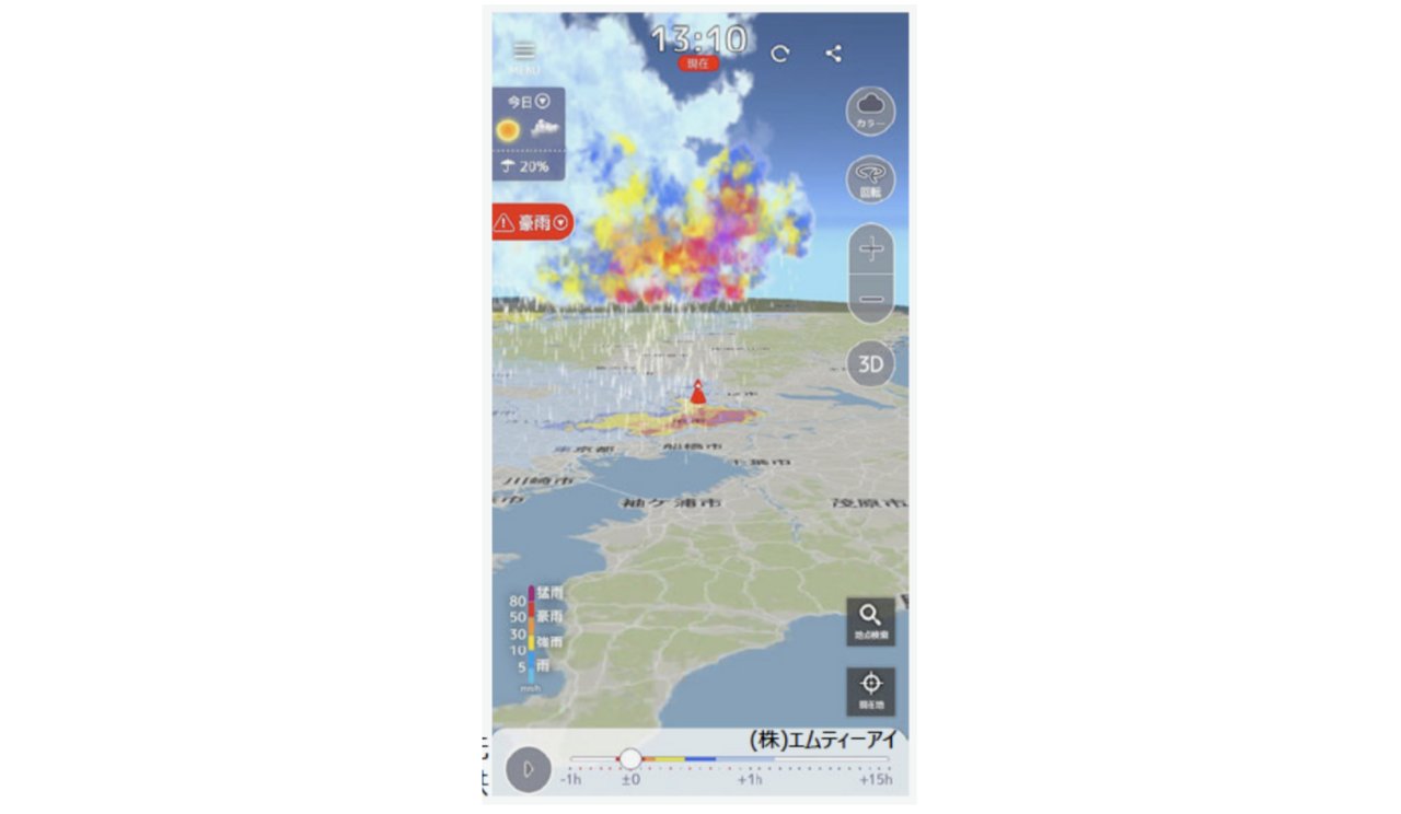 アプリに表示される3D天気予報のイメージ(出典:総務省「大阪・関西万博における「高精度な気象予測情報」提供の実証」)