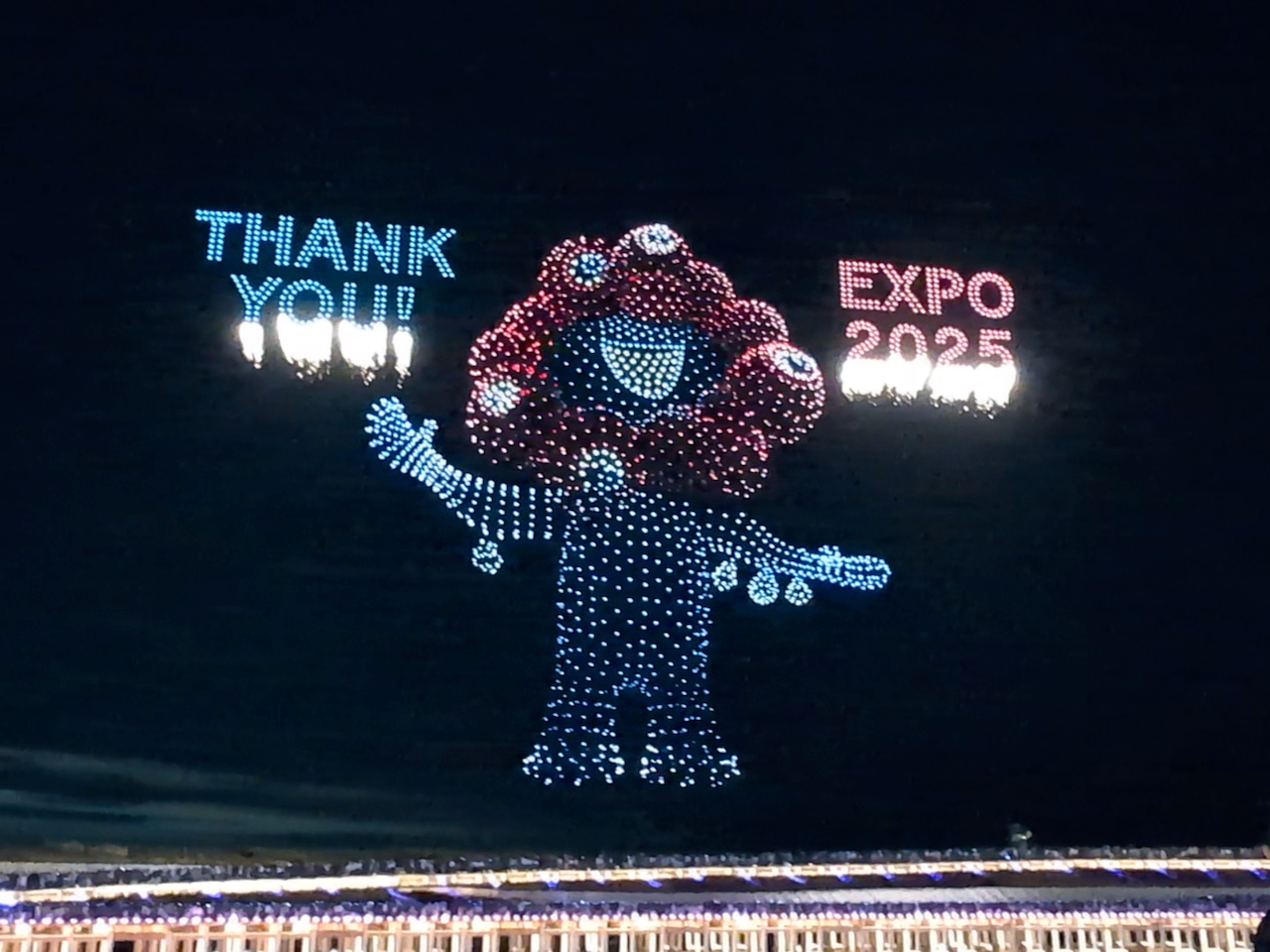 もちろん、本来のエンターテインメント技術の検証も進められており、閉会を迎えた最後の夜は、花火とともに巨大なミャクミャクが姿を現し、メッセージを届けるサプライズな演出が行われていました。
