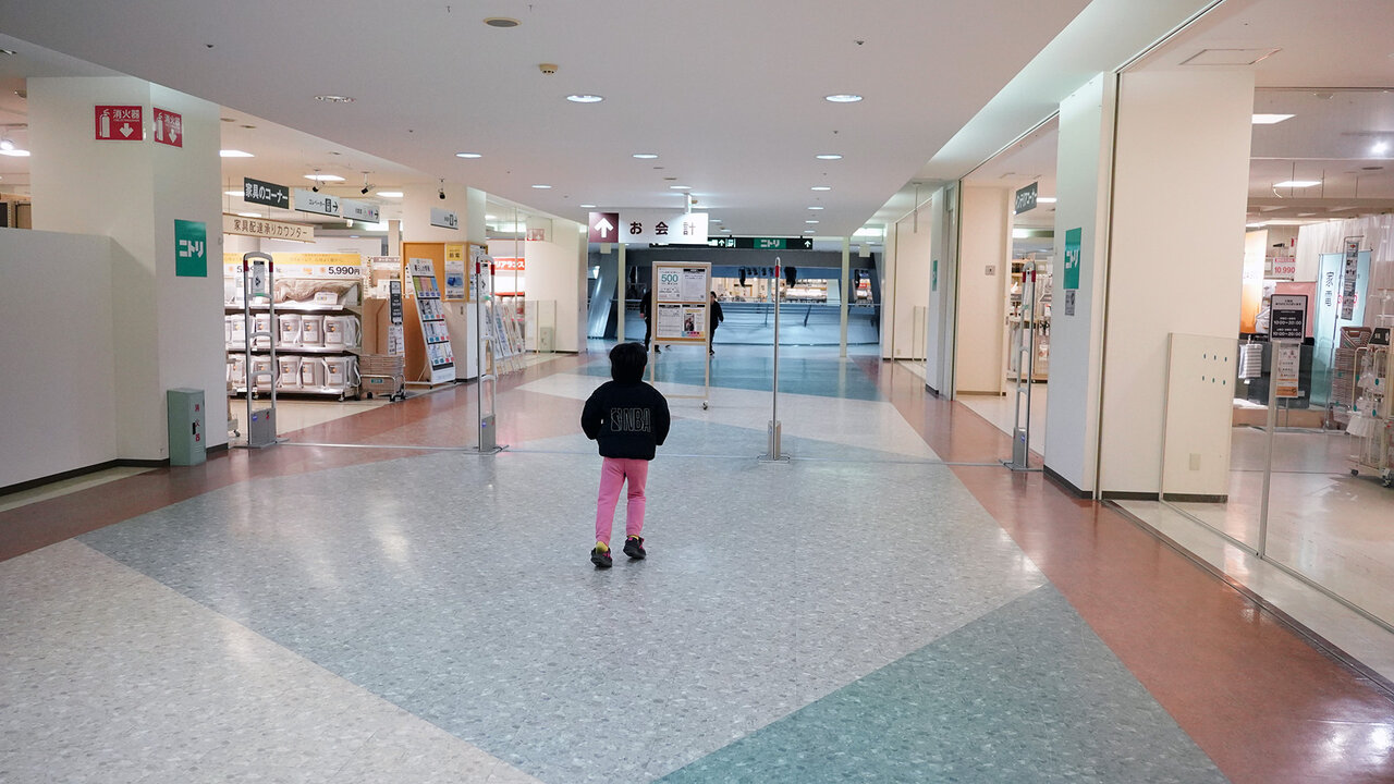 約10kgの次男を抱っこひもで抱いた筆者は、そこからさらに2階を探索。2階は衣料品とフードコートがメインなのですが、平日の17時のためか、閉店の店舗も多く、場所によって人が少ない状態です。時折見かけるのは、薄着の高校生。室内なので3月の北海道でも暖かいためか、生足でスカートの短い若い子たちの比率が高いように感じました。
