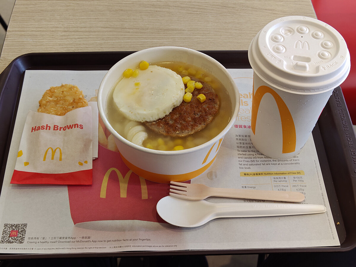 「朝マック」のセット。香港では朝食にマカロニを食べるのが一般的