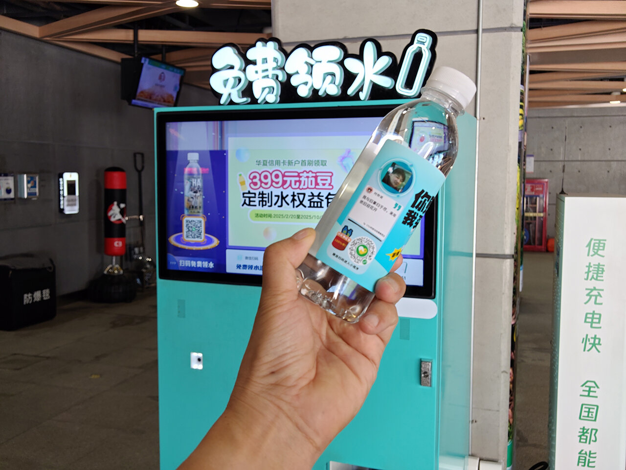 ここから徒歩で地下鉄9号線の「皇崗口岸(ファンガン国境)」駅へ向かう。駅構内には、WeChatアカウントを使うと無料でペットボトルの水がもらえる自動販売機があり、筆者はいつも利用している。ボトルのラベルにはアカウントアイコンの顔写真が小さく印刷されて出てくるので、受け取りまで1分ほどかかる。深セン地下鉄の乗車もWeChatのミニアプリで可能なので、日本から訪れる人もWeChatアカウントを作り、日本のクレジットカードを紐づけておくと便利だ。