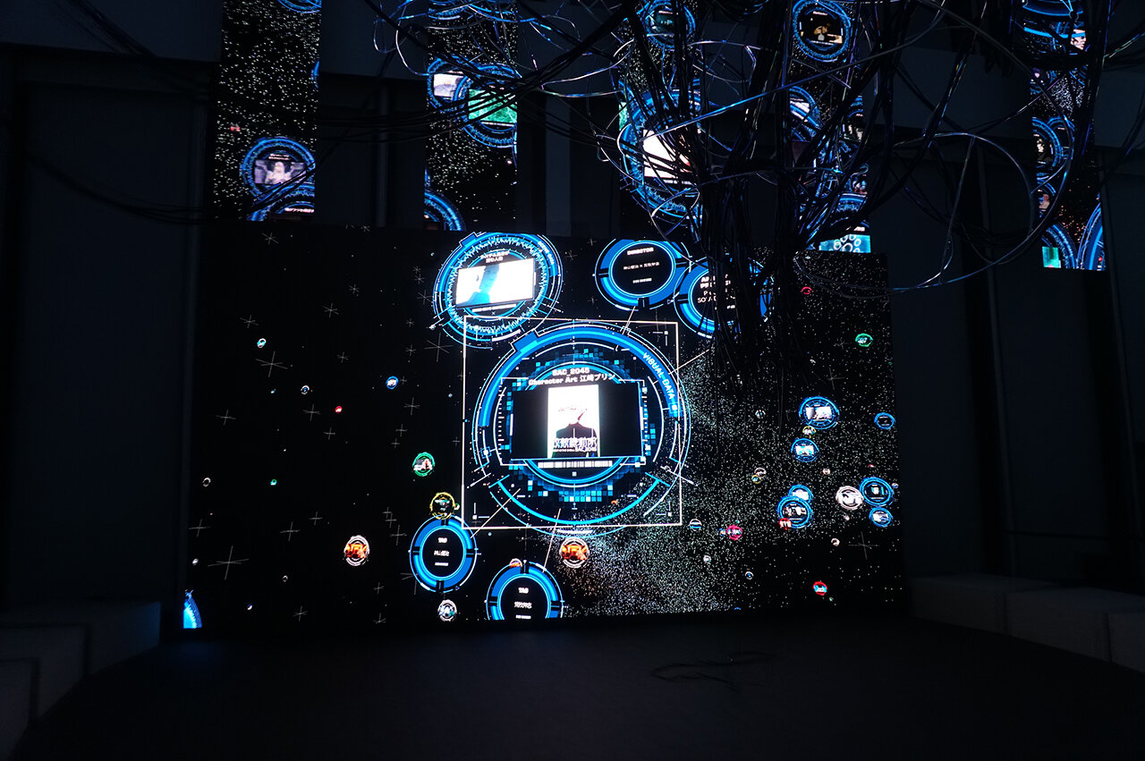 壁一面にマッピングされる攻殻機動隊のデータベース情報(筆者撮影)