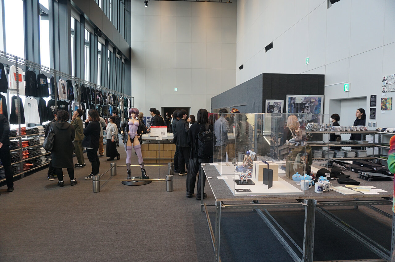 等身大フィギアやTシャツなどのオフィシャルグッズが販売される「本展限定ショップ」(筆者撮影)