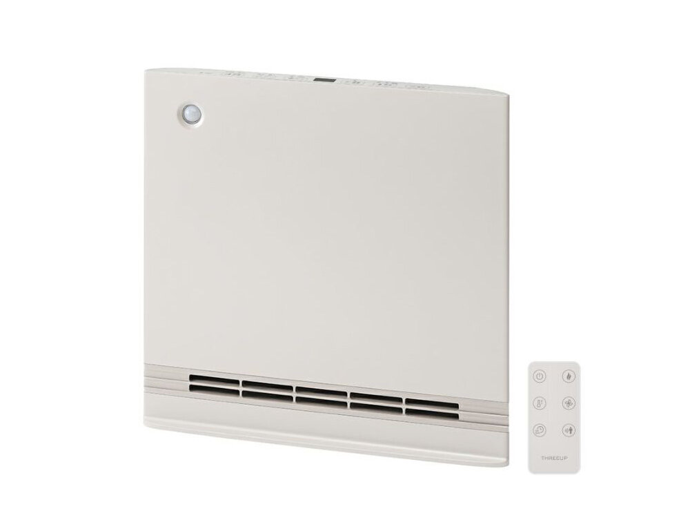 強(1200W)、中(800W)、弱(500W)の出力切り替えができるほか、夏に向けて送風モードも備える壁掛け形ファンヒーターです。木壁や厚い合板壁であれば、付属の壁掛けフックをネジ留めすることで設置できる手軽さが魅力です。1/2/3時間後に設定できる切タイマーのほか、人感センサーが人を感知すると運転を開始し、人の動きを5分以上感知しなくなると運転を停止する「人感センサー」モードを備えています。