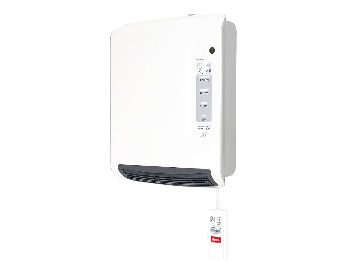 600Wのカーボンヒーターを2基搭載し、1200Wと600Wの2段階切り替えが可能な壁掛け形ファンヒーターです。体を芯まで温められる遠赤外線を多く放射するカーボンヒーターに加えて、ファンで温風をしっかりと部屋中に届けてくれるのが特徴です。温度センサーが室温を検知し、20~25℃になるように暖房出力を自動的に切り替えて運転する「ecoオート運転」や、人感センサーが人を感知すると運転を開始し、人の動きを1分以上感知しなくなると運転を停止する「人感センサー」モード、夏場向けに涼風モードも備えています。設置に工事が必要ですが、カーボンヒーターのパワフル暖房を安心して利用したい人におすすめです。