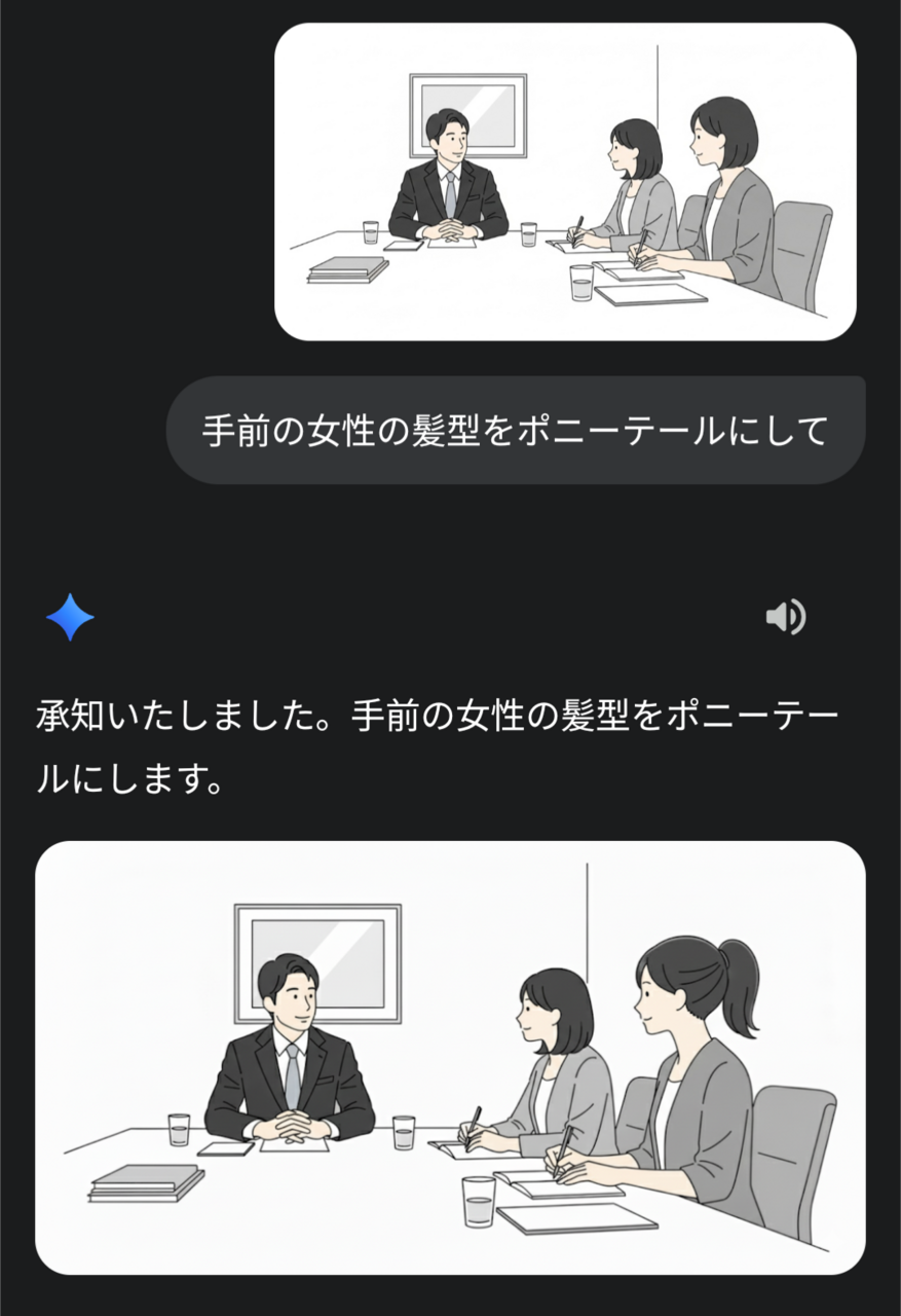普通の会話文による指示で、生成した画像の変更ができるのがNano Bananaの特徴です。