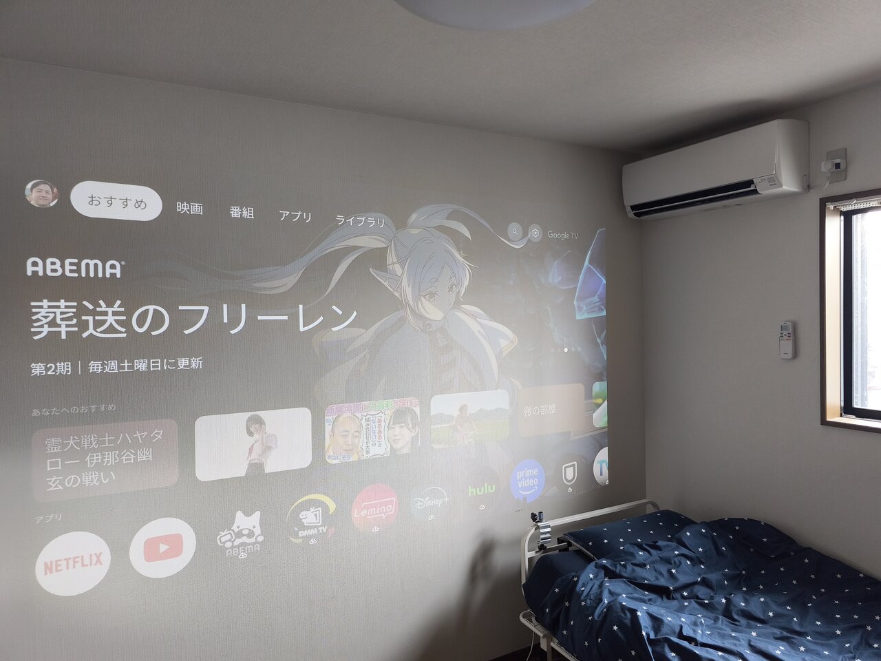 自動調節機能が優秀なため、モバイルプロジェクターと同様に「必要なときだけ設置する」というスタイルでも利用できる点も魅力です。HDMI端子にBlu-rayレコーダーやゲーム機などを接続する場合はもう1ステップの作業が必要になりますが、Google TVでYouTubeやNetflixなどの動画共有・配信サービスを利用するのであればすぐに視聴が可能です。