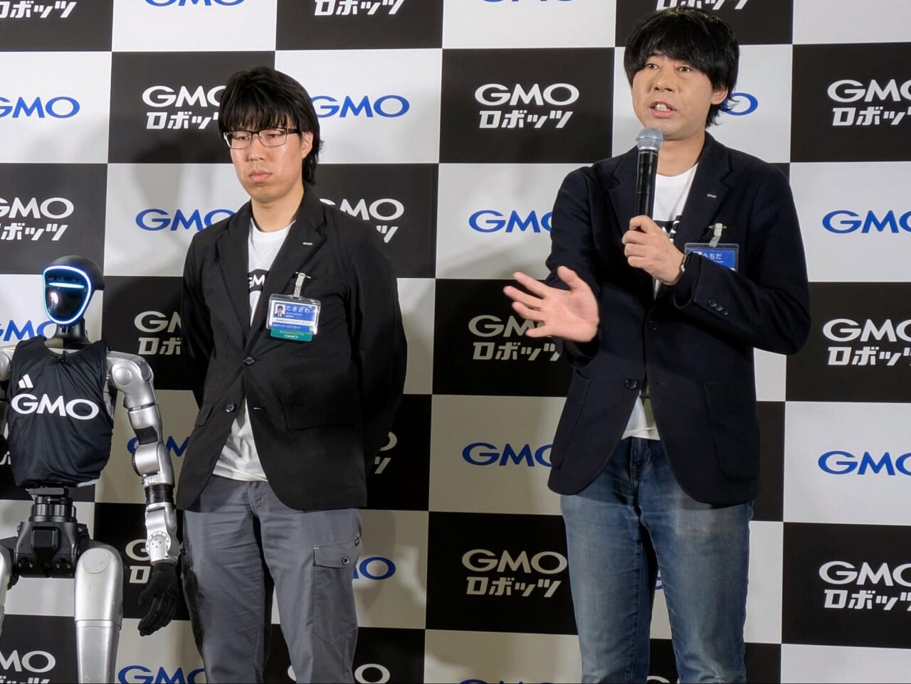 写真左からGMOロボッツ ひとみん、GMO AIR シニアリサーチエンジニア 滝澤照太氏、同社 内田朋宏氏