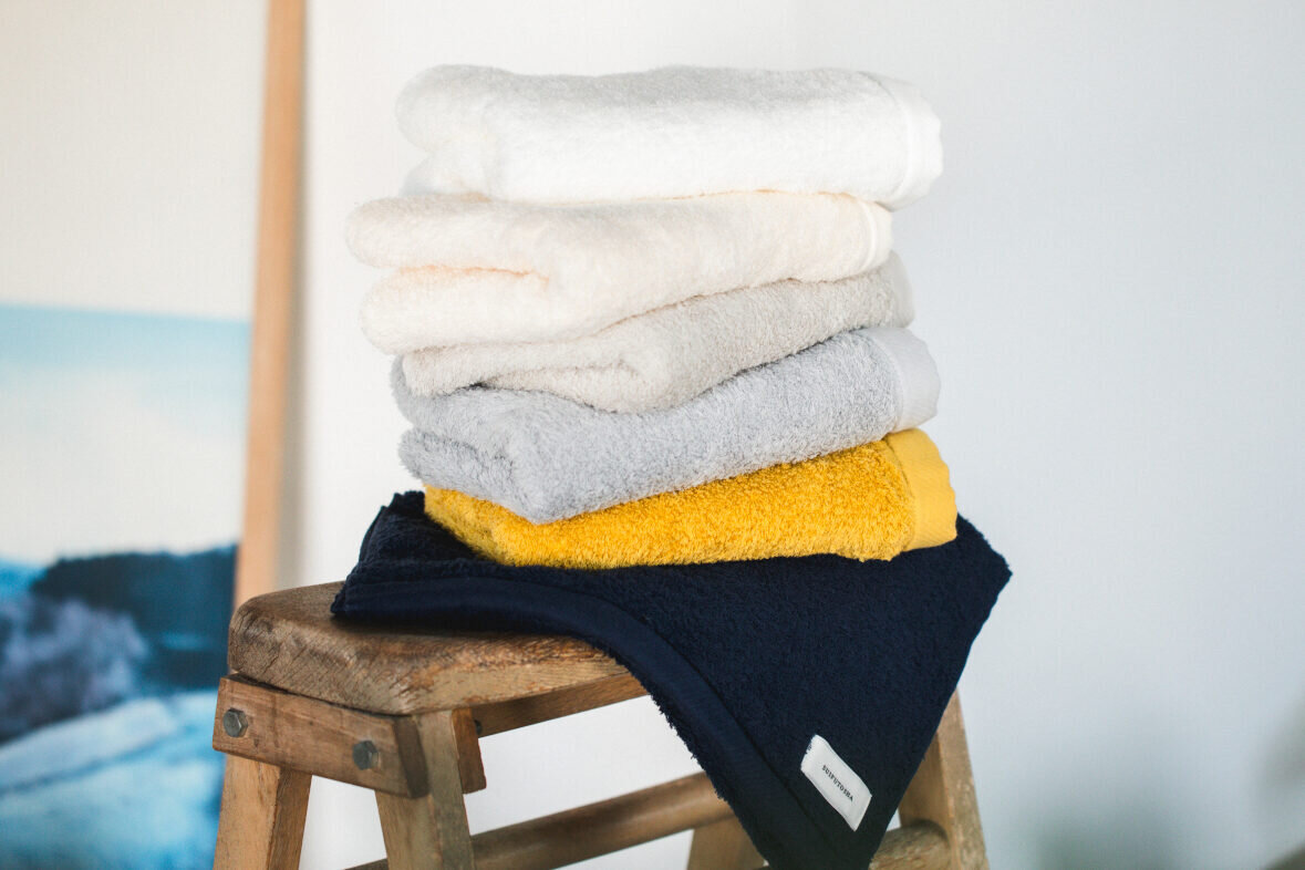 プリュームはフワッと軽くて肌触りも食パンの真ん中のフカフカ部分のようなソフトさ。肌着のタオルは毛足の長い糸がふっくらと織られていて、発色がオシャレ。そしてどちらも吸水性が高く、それでいて乾きやすいタオルです。
