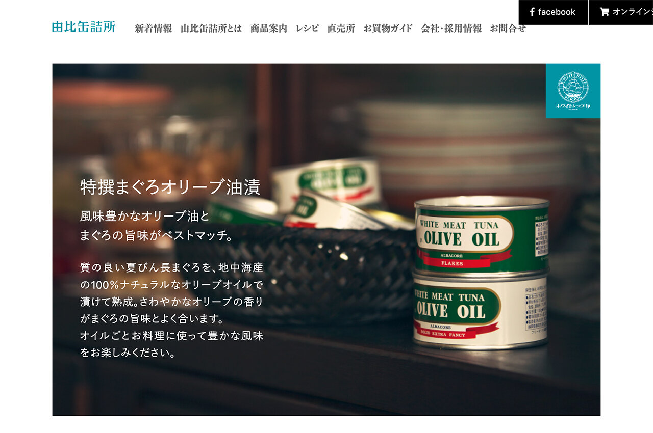 まぐろと相性のよいオリーブオイルを使った「特撰まぐろオリーブ油漬」(由比缶詰所サイト)