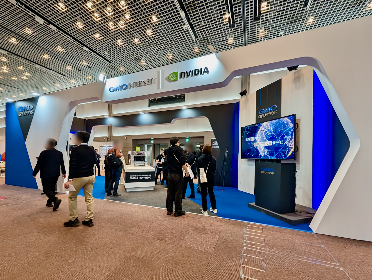 会場入り口付近で目を引いたのが、GMOインターネットのブースです。NVIDIAの GPUをいち早く採用し、2024年に提供開始した高性能クラウドサービス「GMO GPUクラウド」が紹介されていました。