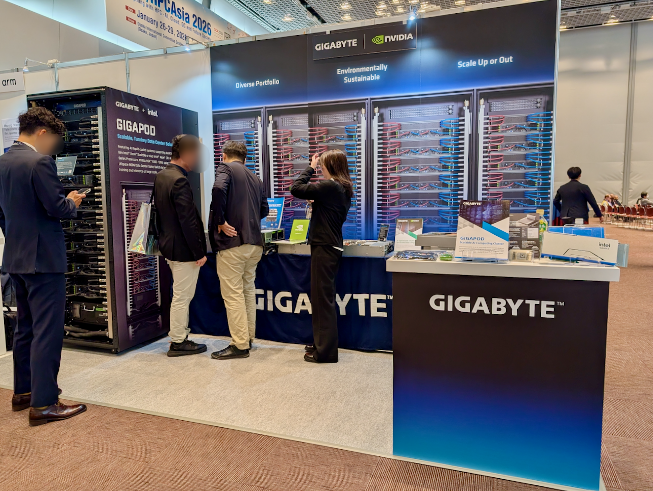 GIGABYTEなどハードウェア関連企業の展示ブースでは実機が展示されていた