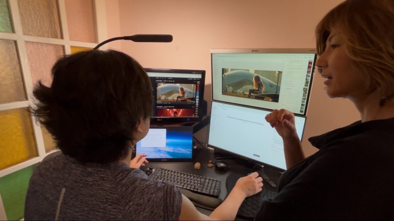 2025年春夏、真正面に大好きなサグラダファミリアが見えるバルセロナのマンションで、共同制作者のタイチと制作方針でリモートの大喧嘩をしながら、寝食を忘れ、1000フレーム以上のAI動画を積み上げていった遠藤。12歳の娘が「ママ、ご飯どうする?」と夕飯の時間を過ぎた頃にそっと部屋のドアを開けて尋ね、「えっ、ごめん! もうそんな時間!?」とハッとしたことも少なくなかったそうだ。