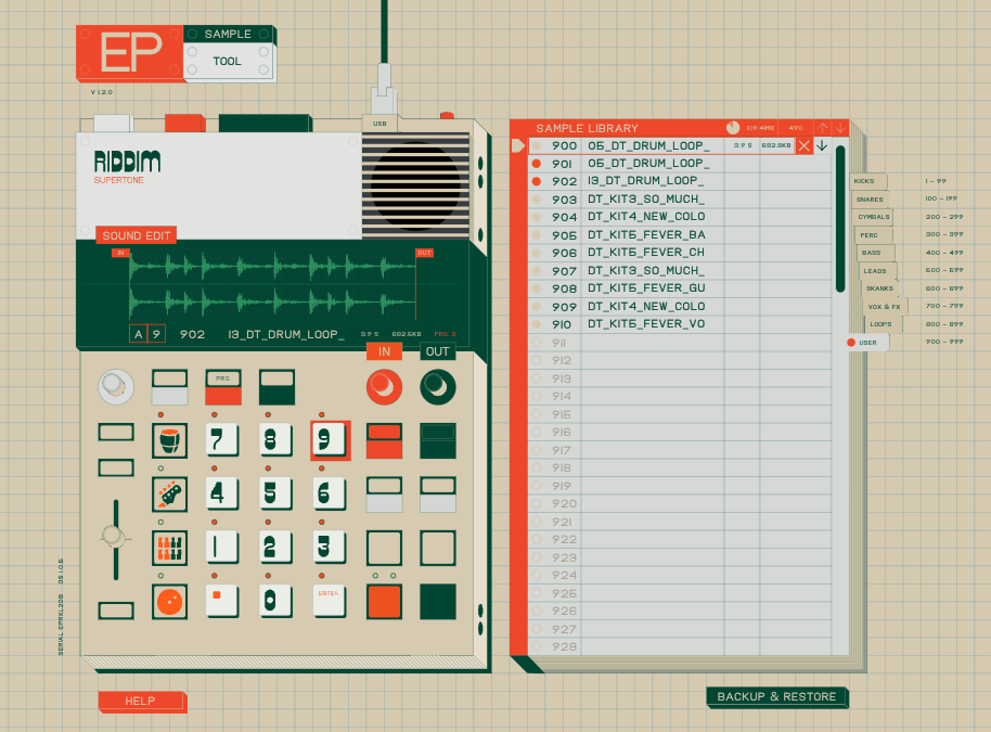 EP-40では自分で用意したサンプル音源を読み込む機能が用意されており、別ジャンルの楽曲制作も楽しめる。筆者はメーカーの専用ウェブ・サンプルエディター「ep sample tool」を使い、PCからディスコ曲のサンプルを転送。ディスコとダブを融合させた「ディスコ・ダブ」の制作に挑戦した。