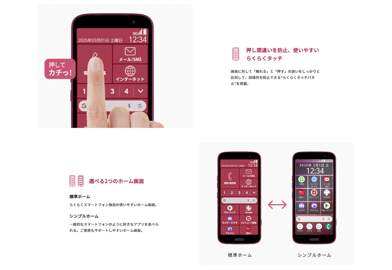 私の周りでは10年ほど前まで、シニアが利用するスマートフォンはドコモの「らくらくスマートフォン」の割合が非常に高かった。らくらくスマートフォンはAndroidをベースに独自のシンプルなホーム画面を採用した、シニアでも安心して使えるというコンセプトの端末だ。現行製品で、SIMフリーモデルも販売されている。
