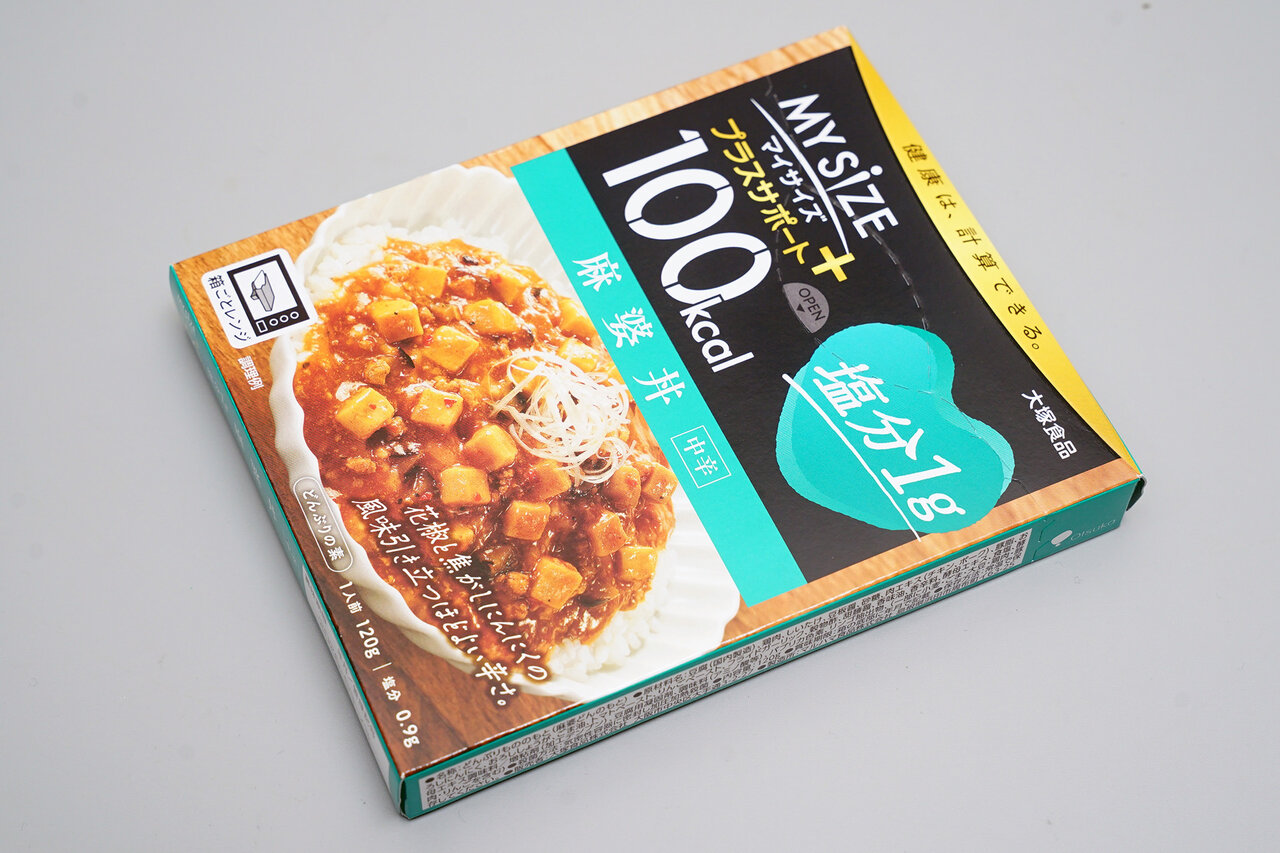 麻婆豆腐好きの筆者は、本場のように油も塩も香辛料もたっぷり使ったものが好みなのですが、それではカロリーは一気に高くなってしまいます。しかし「塩分1g 麻婆丼」は100kcalで、花山椒の辛味やにんにくの風味が納得のレベルに仕上がっています。